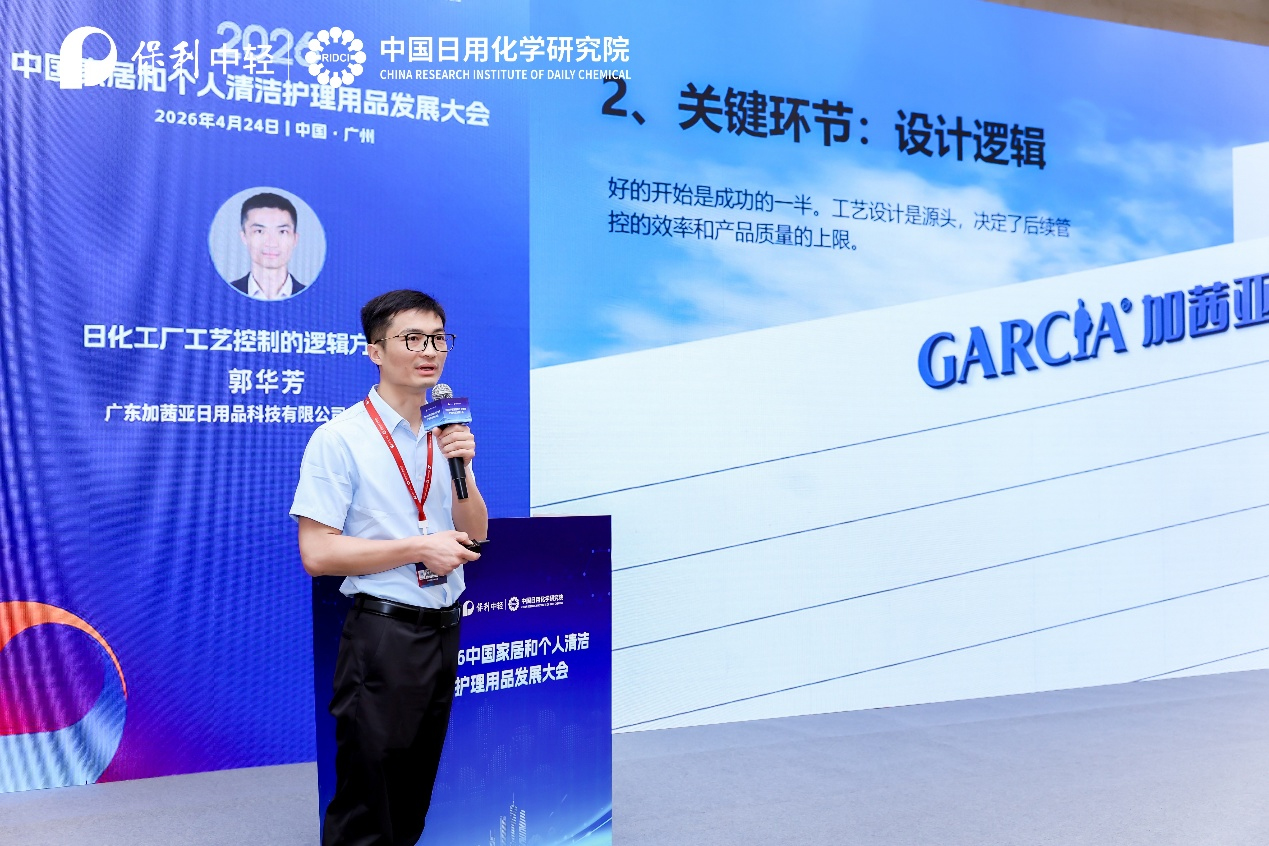 2026 中国家居和个人清洁护理用品发展论坛圆满落幕,广东加茜亚日用品科技有限公司副总经理郭华芳受邀出席,带来《日化工厂工艺控制的逻辑方法概论》专题分享,以“从经验到科学” 的闭环思维,解码日化生产工艺管控核心逻辑,展现公司在日化制造领域的专业实力与技术沉淀。
