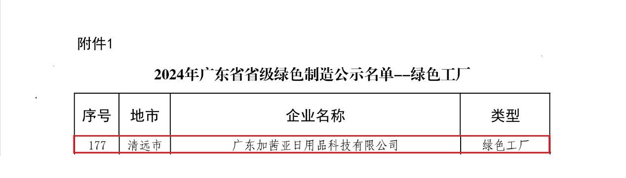 🔼 加茜亚入选 2024 年广东省绿色制造名单